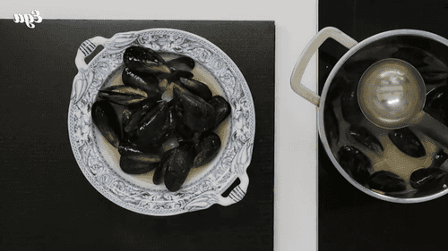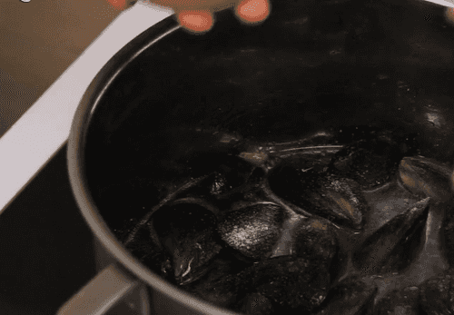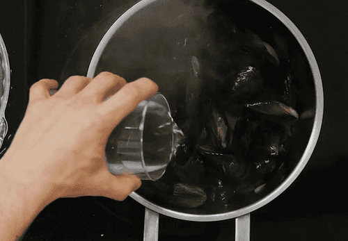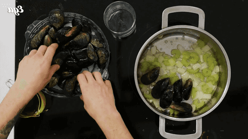 Bring to a boil and cook for another three minutes. After that, shake the contents of the pot to ensure all the mussels are heated.