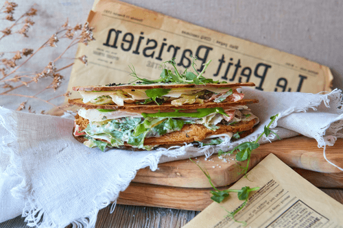 The Caesar salad sandwich is an exquisite blend of classic salad and crispy bread, transforming a familiar dish into a convenient and elegant snack. Its roots trace back to the famous 'Caesar' salad created in 1924 by Italian chef Caesar Cardini. The British interpretation features tender turkey fillet slow-cooked in butter with thyme and black pepper, adding juiciness and depth of flavor. The combination of crunchy romaine lettuce, butter lettuce, fresh vegetables, and Parmesan dressed with a signature sauce creates a harmony of textures. Toasted bread slices encase this symphony of flavors, making the sandwich convenient for dining. Perfect as a light lunch or original appetizer, its rich taste captivates even the most discerning gourmets.