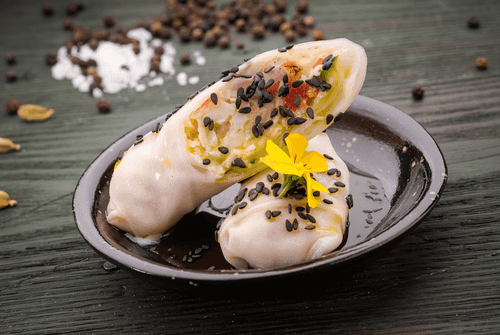 Crab spring rolls are a refined combination of fresh vegetables, juicy crab, and delicate Thai sauce wrapped in thin rice paper. This recipe has roots in Chinese cuisine but its variations are popular throughout Asia. The flavor balances between the freshness of cucumbers and kohlrabi, the sweetness of tomatoes, and the depth of Thai sauce. The lightness and elegance of the rolls make them a wonderful appetizer or main dish for those who appreciate sophistication in taste. They are served chilled, enhancing their refreshing effect, perfect for summer days or a light dinner. The simplicity of preparation and the refined combination of ingredients make these rolls a favorite among seafood lovers and exotic cuisine enthusiasts.