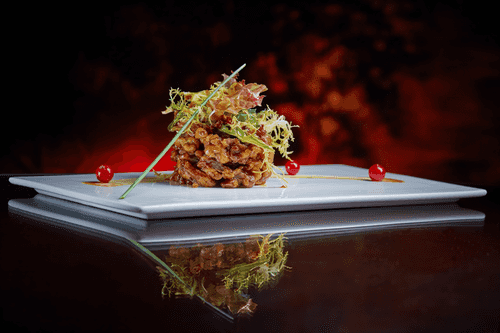 Duck salad with a crispy texture is an elegant blend of Chinese culinary traditions and modern gastronomic trends. The crispy duck, fried to a golden crust, becomes the main highlight of the dish, while a light mix of salad leaves adds freshness and balance to the flavor. The dressing made from black bean sauce, chili, and black rice vinegar gives the dish a deep umami note that harmoniously complements sesame oil and sesame seeds. Green onions and currants add a subtle spiciness and a light fruity note. This salad is perfect as an exquisite appetizer or a light main course that highlights the richness of Eastern cuisine.