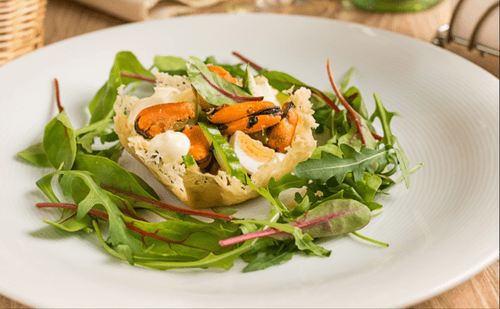 Cheese baskets with mussels