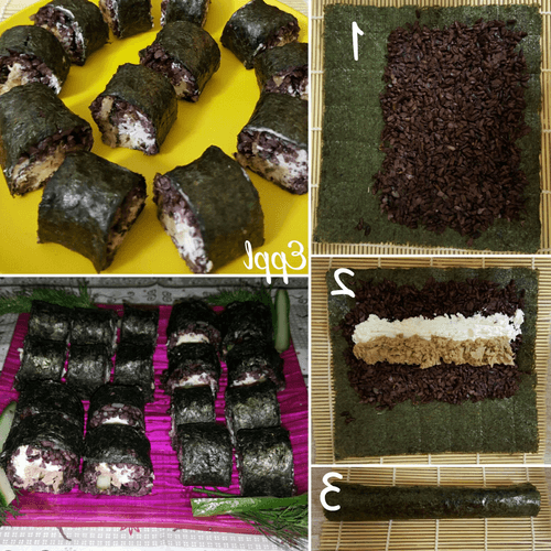Wild rice rolls are an exquisite variation of Japanese sushi that combines traditional techniques with an unusual ingredient. Wild rice adds a nutty flavor and dense texture to the dish, contrasting with the creaminess of the cheese and the richness of the tuna. Nori leaves wrap around the filling, creating a harmony of flavors. The dish is perfect for those wanting to experience Japanese cuisine in a new way. It is served with soy sauce, wasabi, and ginger, highlighting the complexity of flavors. Wild rice rolls are not just food but a gastronomic adventure that unveils new dimensions of familiar taste sensations.