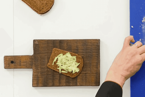 Place a cucumber on a slice of Borodinsky bread.