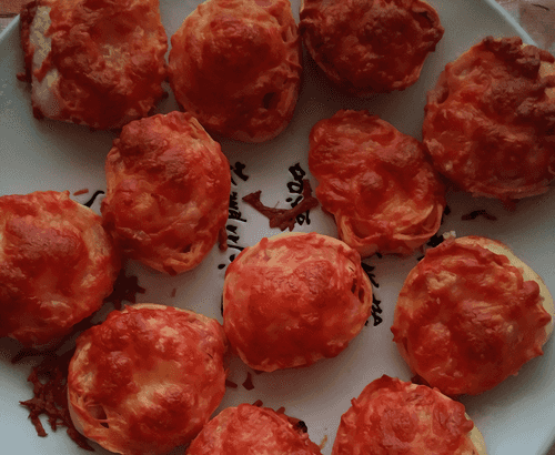 Sprinkle grated cheese (with garlic, if available) over the pieces in the mold, press slightly with your finger to form a cap, and place in the oven for about 20 minutes at 180 degrees. Once the cheese is baked, it can be taken out.