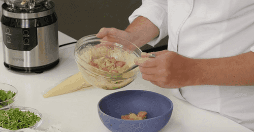Blend the surugun with the liquid part until smooth, transfer to a pastry bag, and refrigerate for an hour.