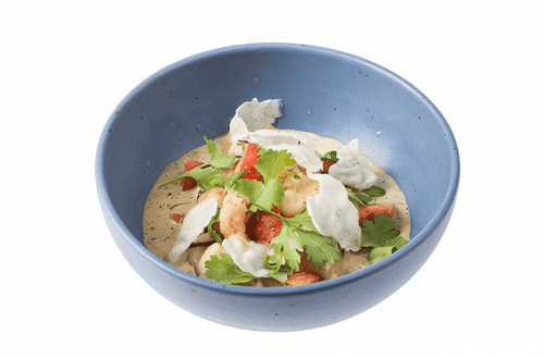 Shrimp ceviche with suluguni is an unusual blend of European and South American culinary traditions. Shrimp, fresh vegetables, and spicy lemon kimchi sauce create a bright, refreshing flavor with a hint of heat, while the delicate suluguni cream adds sophistication and softness. This recipe is perfect for a light summer dinner or a festive feast. Ceviche with cheese cream becomes a true gastronomic discovery, balancing the freshness of seafood with the rich texture of suluguni. Serving on an ice plate makes the dish even more refined, while rice chips add a crunchy note. Ceviche is a symbol of lightness and flavor enjoyment; it pairs wonderfully with white wine or refreshing drinks.