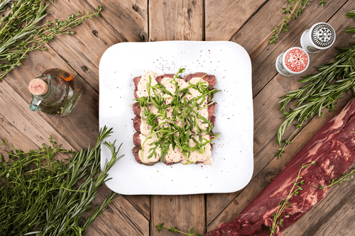 Cold veal tonnato is an exquisite dish with Italian roots that harmoniously combines tender meat and a rich sauce. This culinary masterpiece hails from Piedmont, where the tuna and anchovy-based tonnato sauce became the region's hallmark. The veal, cooked to tenderness and sliced into thin medallions, absorbs the tangy flavor of tonnato, creating a remarkable balance of textures and aromas. Arugula adds a fresh note while pink pepper contributes a light spicy kick. This dish is perfect for a summer dinner or elegant appetizer, revealing the richness of Mediterranean flavors. Served chilled, it maintains its sophistication and highlights the subtle nuances of the ingredients, making each bite truly a gastronomic delight.