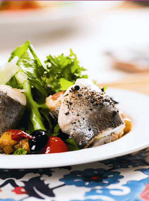 This Italian recipe embodies the freshness and elegance of Mediterranean cuisine. Tender dorado fillet wrapped in thin strips of zucchini gains special juiciness from tomatoes and aromatic basil, creating a harmony of flavors. Steaming makes the fish soft and delicate. The salad made from a mix of greens, olives, capers, and bell peppers is complemented by grated Parmesan that adds zest. The dressing of olive oil, lemon juice, pine nuts, and garlic creates a rich flavor palette with a light nutty note. The dish is perfect for a light summer dinner or an exquisite lunch, impressing with its freshness and refined taste.
