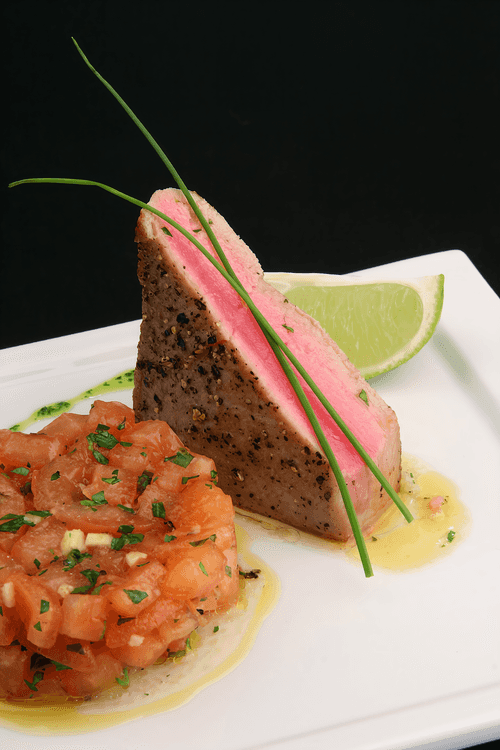 Fried tuna fillet with tomato salad