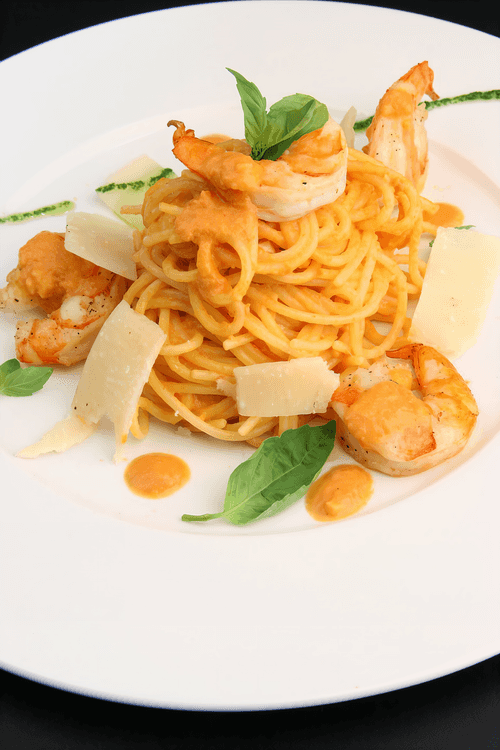 Spaghetti with tiger prawns and curry sauce is an elegant blend of Italian traditions and exotic Eastern notes. Tender, juicy prawns sautéed in olive oil add sophistication to the dish, while the aromatic curry sauce made with a creamy base, tomatoes, and spicy chili infuses the flavor with zest and depth. The perfect combination of spices creates a harmonious balance between the creaminess of the sauce and the spiciness of the curry. Thin, firm spaghetti soaked in rich sauce completes the picture of perfect gastronomic delight. This dish is suitable for a romantic dinner or a cozy evening, revealing a palette of flavors inspired by Italian cuisine with an Eastern twist.