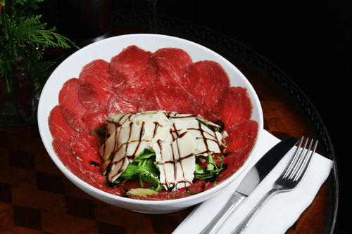 Beef carpaccio with mustard sauce is a refined dish embodying the elegance of European gastronomy. Although traditionally associated with Italian cuisine, its variations have found a place in Spanish culinary traditions as well. Thin slices of beef soaked in honey-mustard dressing acquire a delicate spiciness highlighted by fresh arugula and tangy capers. Creamy balsamic adds a sweet-sour accent, while parmesan completes the harmony of flavors with a rich salty note. This dish is served cold, allowing all ingredients to reveal their beauty, making it perfect for a light dinner or an exquisite appetizer. Carpaccio is true art of simplicity where freshness and balance are key elements of its exquisite taste.