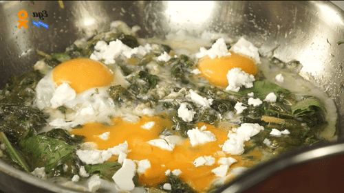 Carefully place the eggs in different spots without damaging the yolks. Reduce the heat and cover with a lid. Cook until the whites are slightly set (the yolks should remain runny!).