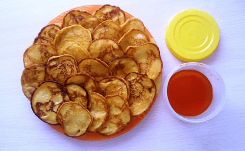 Heat vegetable oil in a pan and spoon the prepared batter, spreading it out. Fry until golden brown - then flip and fry on the other side.