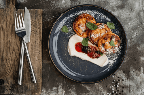 Syrniki are a beloved treat of Russian cuisine, originating from village homes where cottage cheese was a staple. Their delicate texture, crispy crust, and subtle vanilla aroma create a perfect blend of flavors. Jam adds vibrant fruity notes, making syrniki not just breakfast but a true dessert that can lift your spirits with the first bite. Serving with sour cream highlights the creamy richness of the dish, while fresh mint adds lightness. This versatile treat is suitable for both cozy family tea times and energizing morning meals.