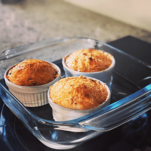 Add brie cheese (or any other to taste) and crack a second egg on top. If the molds are small and the eggs are large, one egg may be enough.