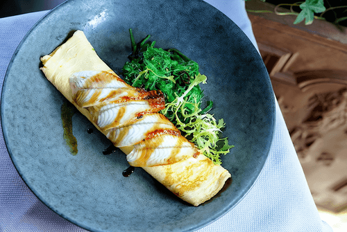Protein omelette with eel and chuka salad