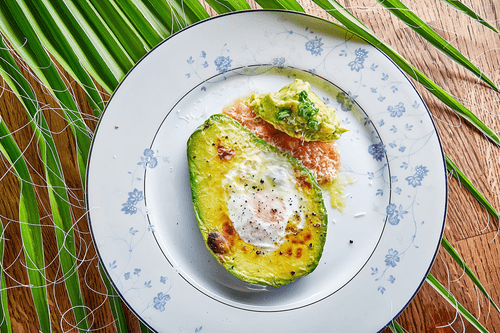Fry the avocado in a pan, breaking an egg into the pit hole.