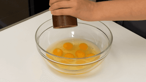 Beat the eggs lightly with a fork, just to break the yolks. Add salt, pepper, and thyme.