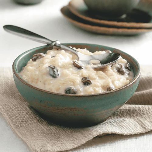 Rice porridge with milk and raisins