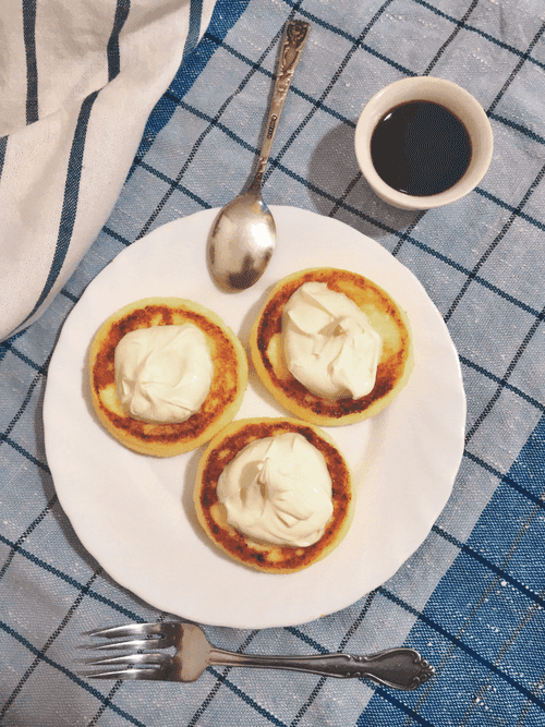 Corn flour syrniki are a delicate and airy treat from Russian cuisine. Their base is cottage cheese, which gives the dish a light tang and rich dairy flavor. The addition of corn flour makes the texture softer and adds a subtle nutty note. Syrniki are perfect for breakfast or a sweet snack, and their golden crust when fried makes them especially appetizing. Traditionally, they are served with sour cream, jam, or honey, complementing their rich taste. Historically, syrniki were popular among Slavic peoples, especially in Russia and Ukraine, where cottage cheese is a key ingredient in many dishes. These syrniki are an excellent combination of simplicity and sophistication that can adorn any table.