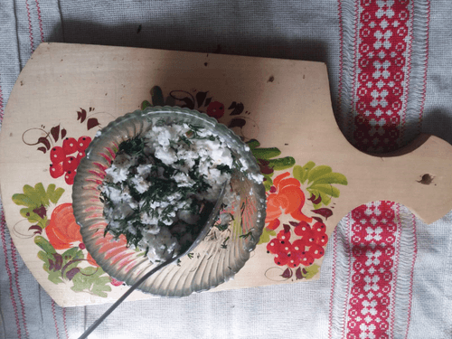 Mix the cottage cheese with dill and the other ingredients.