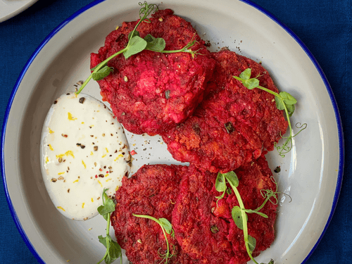 Recipes from Anna Shpak's book "Eat deliciously. Live long. Be happy!" "The sweetness of the beetroot, the saltiness of the fish, the neutral taste of the chickpea base and the piquant horseradish are a hit combination. It's very easy to see for yourself - you just need to make these pancakes.