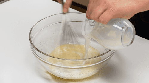 Add warm milk to the bowl and stir.