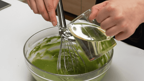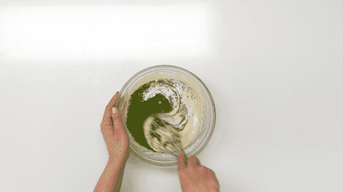 Pour the wheat flour, baking powder, and matcha tea into a bowl and whisk well with a fork or whisk to avoid lumps.