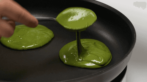 Place a dry skillet on high heat and heat it up, then reduce the heat to just above medium. Pour 2 tablespoons for each pancake and cook for 1.5 minutes on each side.