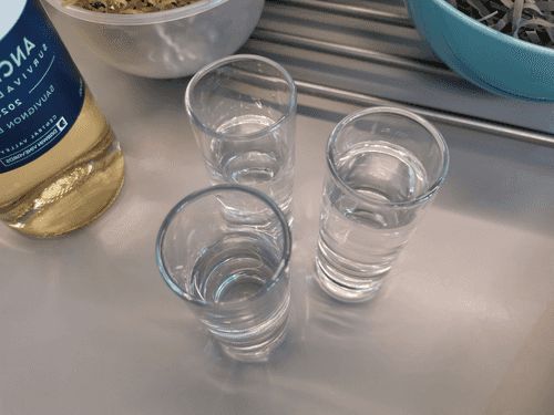 Pour half a glass of drinking water.