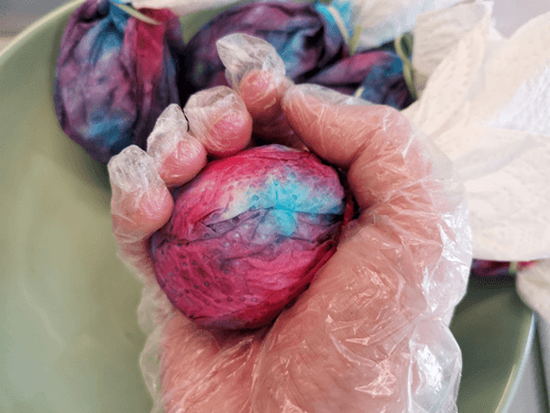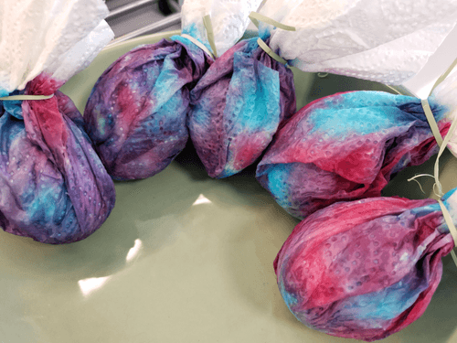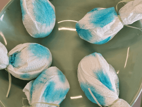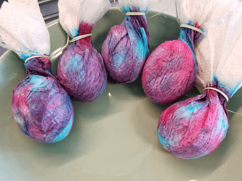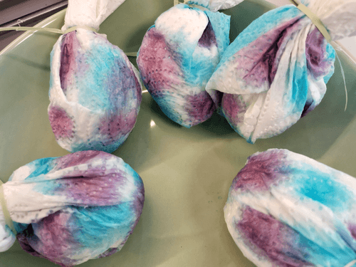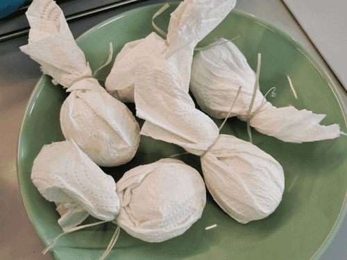 Wrap the eggs in napkins and tie them.