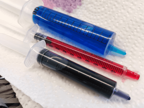Use a separate syringe for each dye.