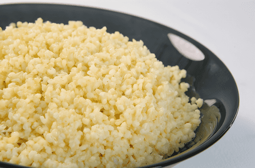 Rinse the millet first in warm, then in hot water, add water, and cook in a spacious dish in the microwave at maximum power for 10 minutes.