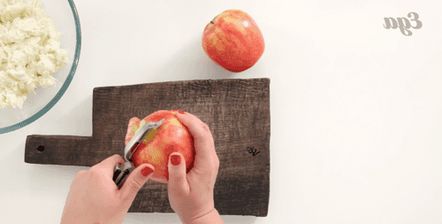 Wash the apples, peel and core them, chop finely, and add thoroughly washed raisins.