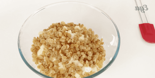 Combine the strained cottage cheese with chopped apples, milk, raisins, sugar, vanillin, yolks, and semolina, and mix well. Then add the beaten egg whites to the prepared mixture.