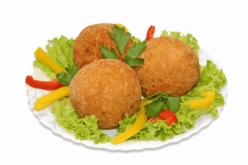 Potato croquettes with meat in an omelet are a refined dish of French cuisine, combining the delicate texture of mashed potatoes with the rich flavor of meat. Originally, croquettes appeared in France in the 17th century as a way to give simple potatoes an elegant look. Here they are steamed, making them airy and light, while the enveloping omelet adds tenderness and velvetiness. The croquettes are served with melted butter that enhances their rich taste. This dish is perfect for those who appreciate sophistication and tenderness in every bite.