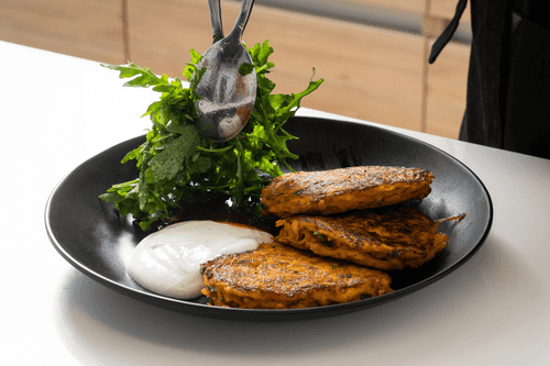 Carrot pancakes with salted yogurt