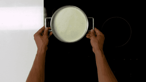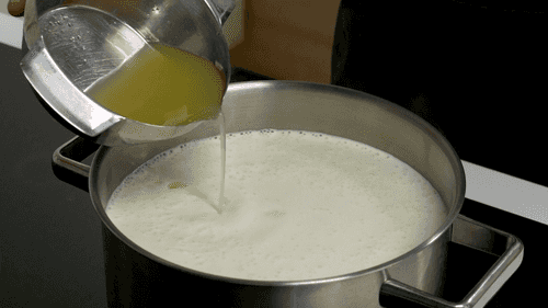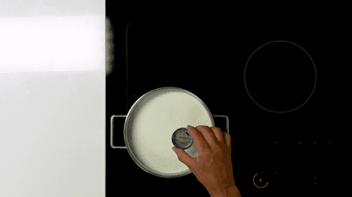 Pour the milk into a pot, heat it but do not boil if it is pasteurized. If the milk is from the farm, it should be brought to a boil.