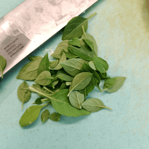 Separate the basil leaves from the stems. If the leaves are large, chop them.