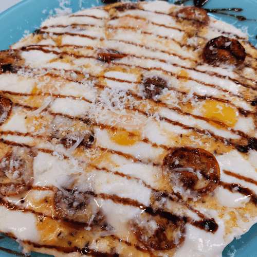 Eggs with mozzarella and balsamic sauce is a refined dish of Italian cuisine that combines the tenderness of cheese with the spiciness of aromatic spices. The origins of this recipe trace back to Mediterranean gastronomy traditions, where eggs often serve as a base for hearty breakfasts. Mozzarella adds a creamy texture, while balsamic sauce provides a light sweet-sour note that complements the taste of cherry tomatoes and fresh basil. This breakfast possesses the sophistication of a restaurant dish but is easy and quick to prepare. It’s perfect for those who want to start their day with the taste and aroma of sunny Italy. It can be served with crispy bread or warm toast, enjoying the richness of its flavors.