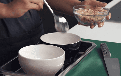 Pour water over the oatmeal in portion plates and steam for 10 minutes.