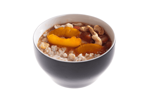 Oatmeal steamed with caramelized fruits is the true embodiment of morning tenderness. European cuisine has long been famous for its cozy breakfasts, and this recipe offers a sense of comfort and gastronomic delight. The velvety oatmeal, steamed to an astonishingly soft texture, becomes even richer and creamier with the addition of cream. Caramelized peaches and strawberries soaked in golden caramel with subtle notes of butter and salt complement the dish beautifully. Crunchy cashews add textural contrast, turning each spoonful into a symphony of flavors. This is the perfect morning dish for those who appreciate the harmony of sweet and creamy while seeking to make their breakfast not just nutritious but also inspiring.