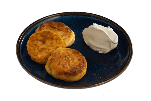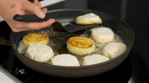 Place the cheese pancakes on a baking sheet and send them to an oven preheated to 180 degrees for 10-15 minutes.