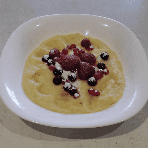 Sweet polenta with berries is a delicate and aromatic dish from Italian cuisine, where polenta is traditionally prepared as a base for many variations. Here it transforms into a morning treat or light dessert thanks to the addition of apples and berries. The creamy texture of the polenta perfectly complements the slight tartness of the fruits, creating a harmony of flavors. Butter adds a velvety touch to the dish, while powdered sugar gives it a light sweetness. Polenta with berries is an excellent choice for breakfast or cozy tea time; it warms you up and energizes you. Its simplicity makes it accessible even for beginner cooks, and the combination of milk and fruits turns ordinary porridge into an exquisite delight.