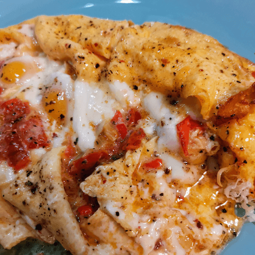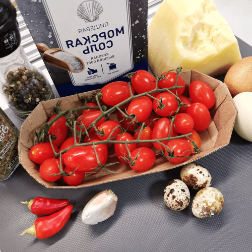 Spicy scrambled eggs with tomatoes and cheese is a dish of Hungarian cuisine that combines the tenderness of eggs with the rich flavor of tomatoes, mozzarella, and aromatic herbs. Hungarians love dishes with depth of flavor and a hint of spice, and this scramble fully aligns with those traditions. The juicy filling of tomatoes and peppers, tender eggs, and melting parmesan create a harmonious ensemble, while black sesame and spices add a rich aroma to the dish. It’s an ideal option for a quick yet exquisite breakfast or light dinner. The dish pairs wonderfully with fresh bread and greens, while the mild heat of sriracha sauce adds character to it. Try this scramble and experience a true gastronomic journey into the heart of Hungarian cuisine!