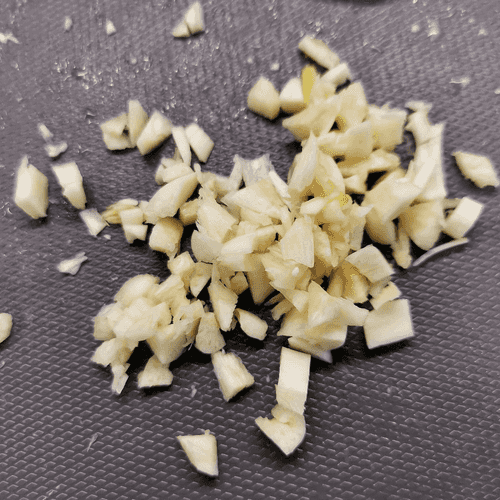Crush the garlic with a chef's knife.