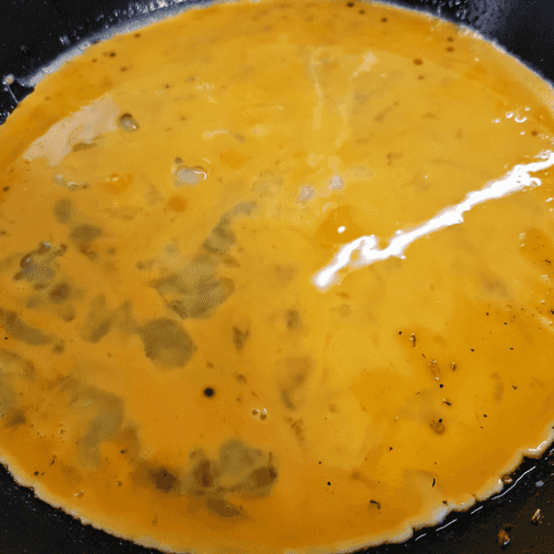Pour the eggs into the hot pan.