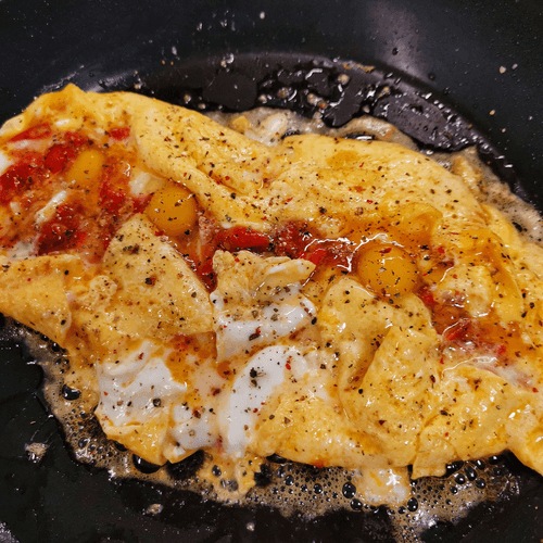 Place the tomato with pepper on top.