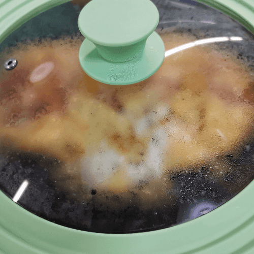 Reduce the heat to a minimum and cover with a lid.