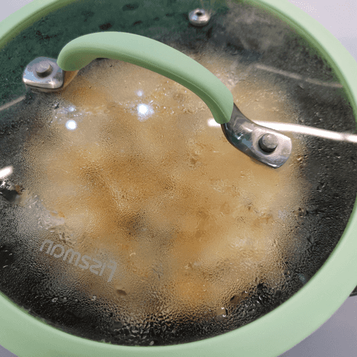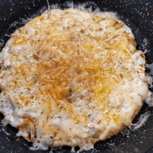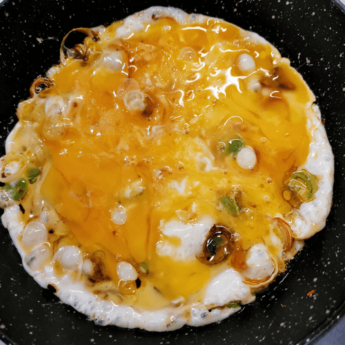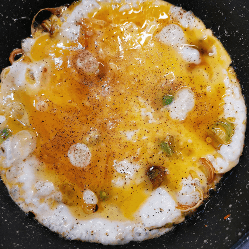 Stir the yolks on top with a spatula. Reduce the heat to medium.
